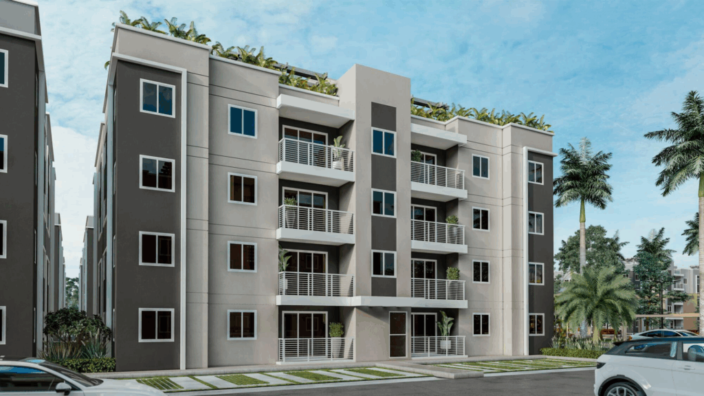 Este proyecto residencial esta ubicado en Santo domingo este, autopista las amercias, el mismo contempla 4 etapas de edificios, un control de acceso con seguridad 24 horas y un área comercial.