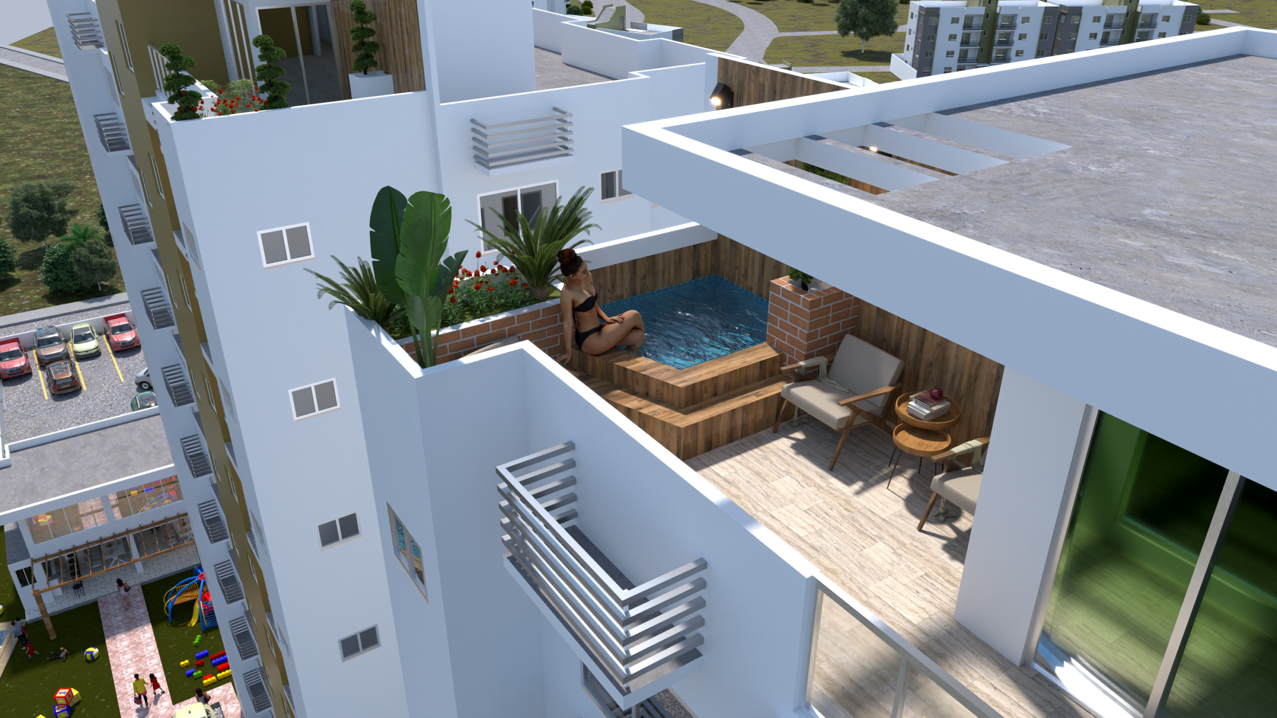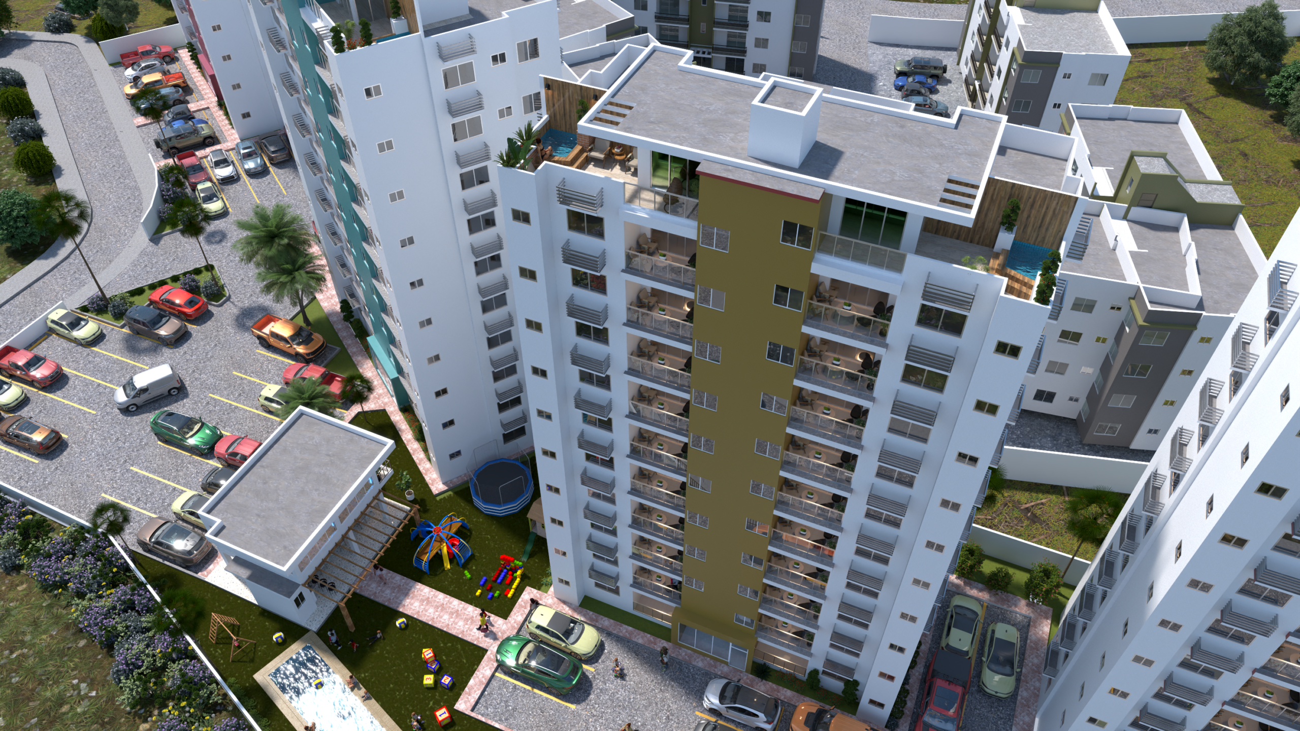 Las torres son de tipo plurifamiliar, propuesto a ser desarrollado en Calle yaguasa, Santo Domingo Norte. El mismo busca contribuir al desarrollo de la zona, como asentamiento equipado. Este se desarrolla en una superficie de 4,120m2.